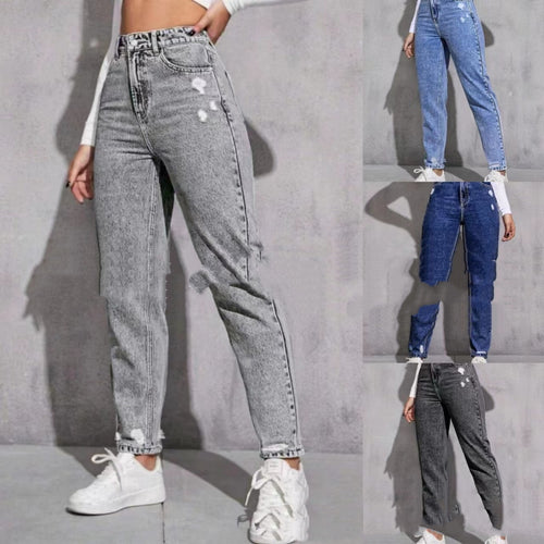 European And American Women's Casual Ripped Washed Jeans With Nine-part Calf