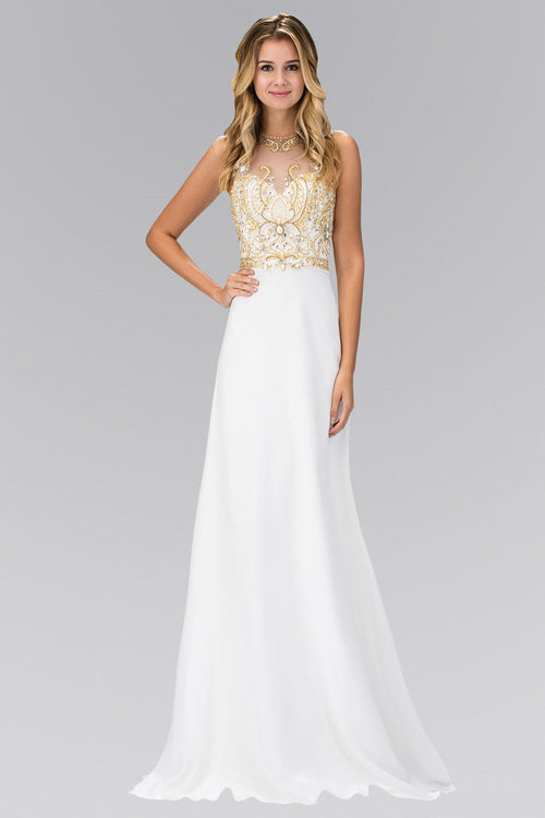 Jewel and Bead Embellished Long Dress with Back Cut Out