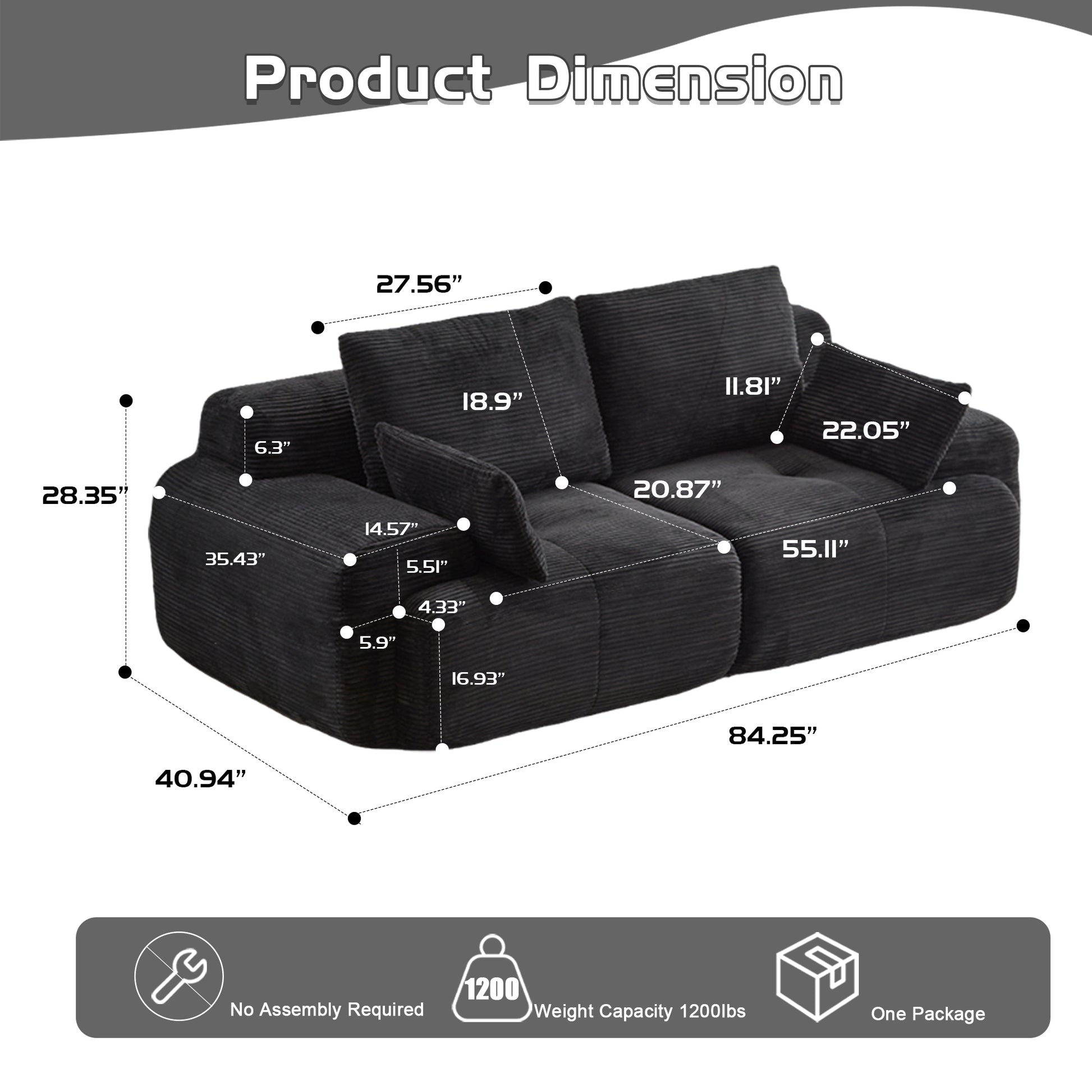 Product Name:Modern Memory Foam Compressed Sofa,2 Seater Large Sectional Couches for Living Room,Pet-Friendly Cloud Modular Sectional Sofa,Corduroy Fabric,Extra Deep Loveseat,No Assembly required, Black