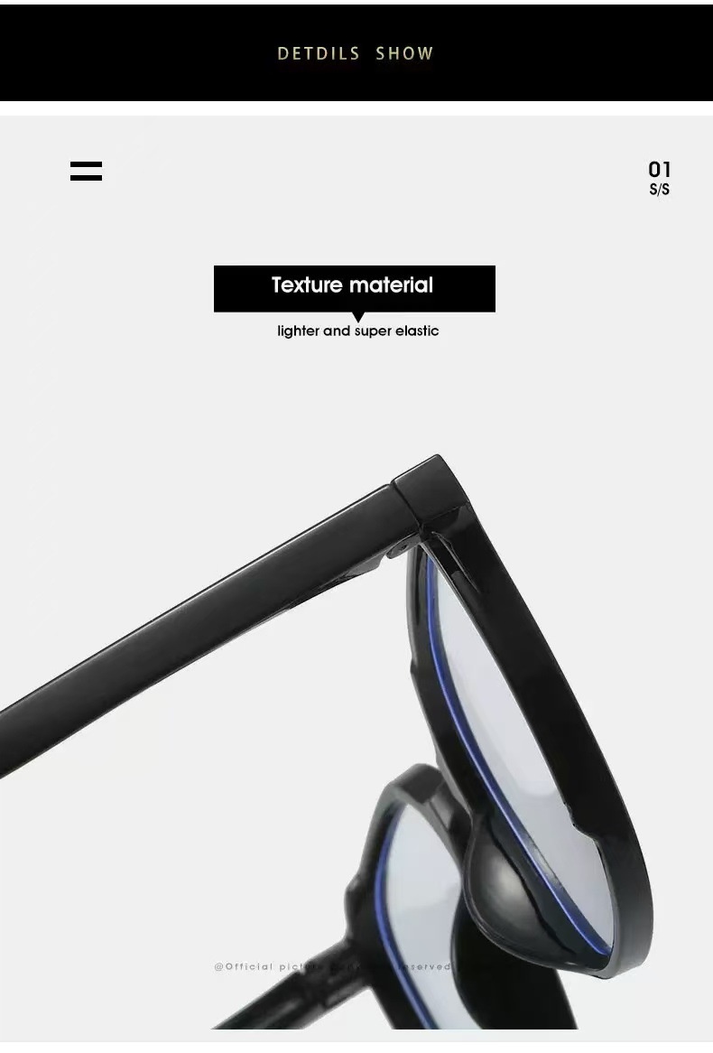 Color del marco: Marco negro con lente transparente, marco de leopardo con lente blanca, marco transparente con lente blanca, marco verde con lente blanca, marco rosa con lente blanca, marco azul con lente blanca, marco gris con lente blanca