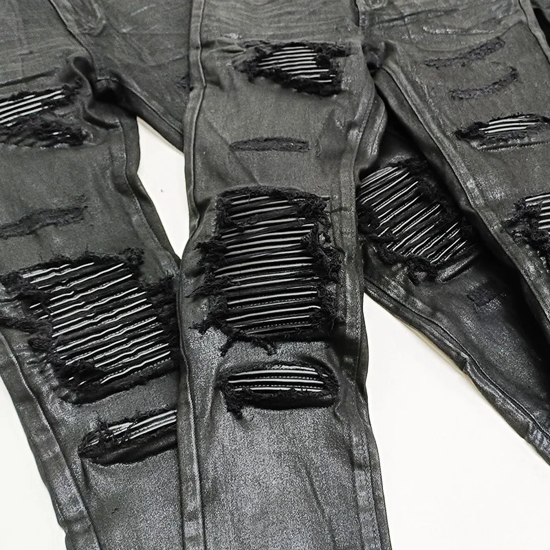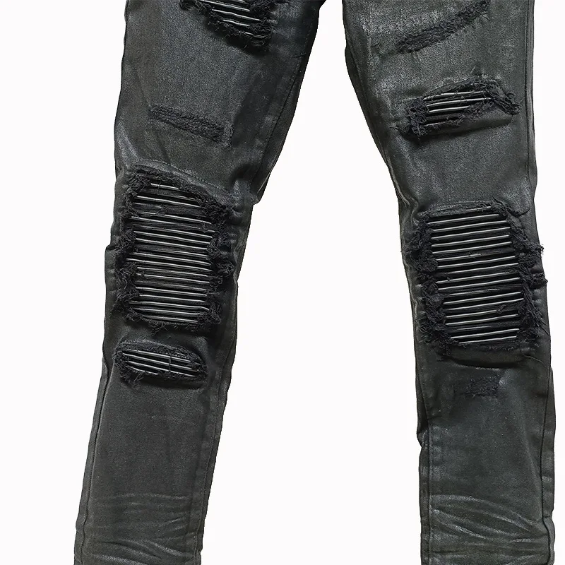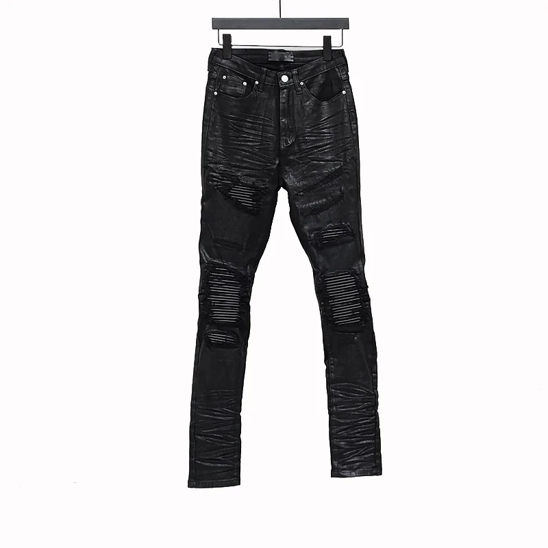 Owen Seak Men‘s Oil wax Jeans Cotton Denim Slim Autumn Hole Pencil Trousers Designer luxury Pants