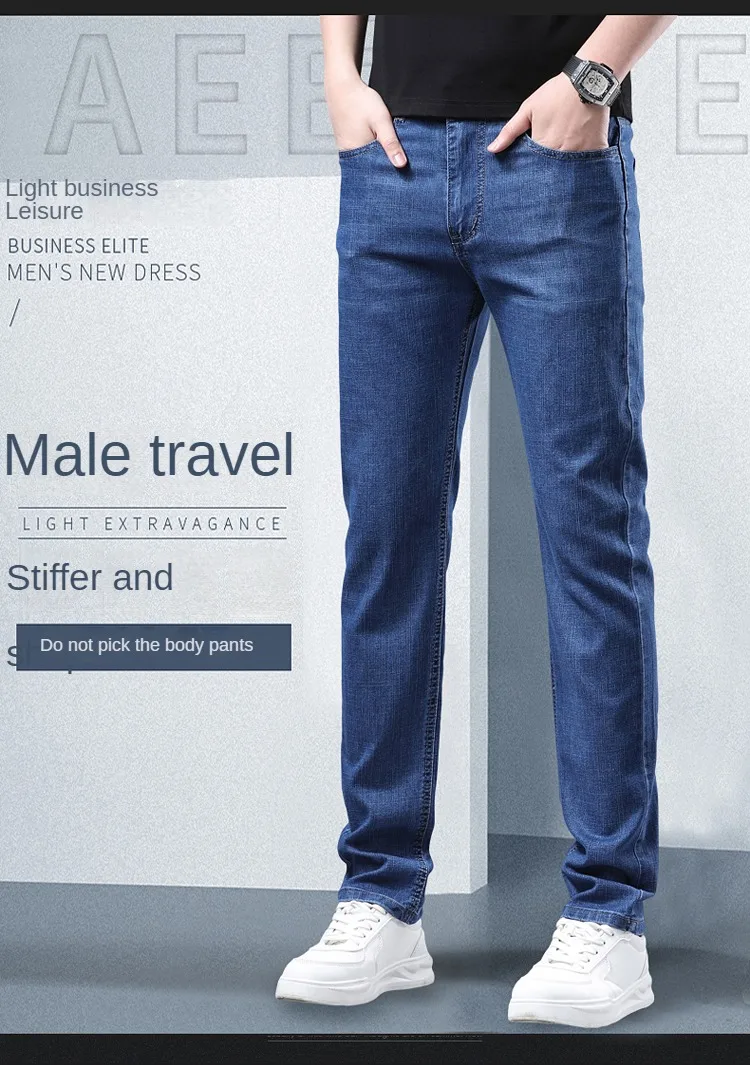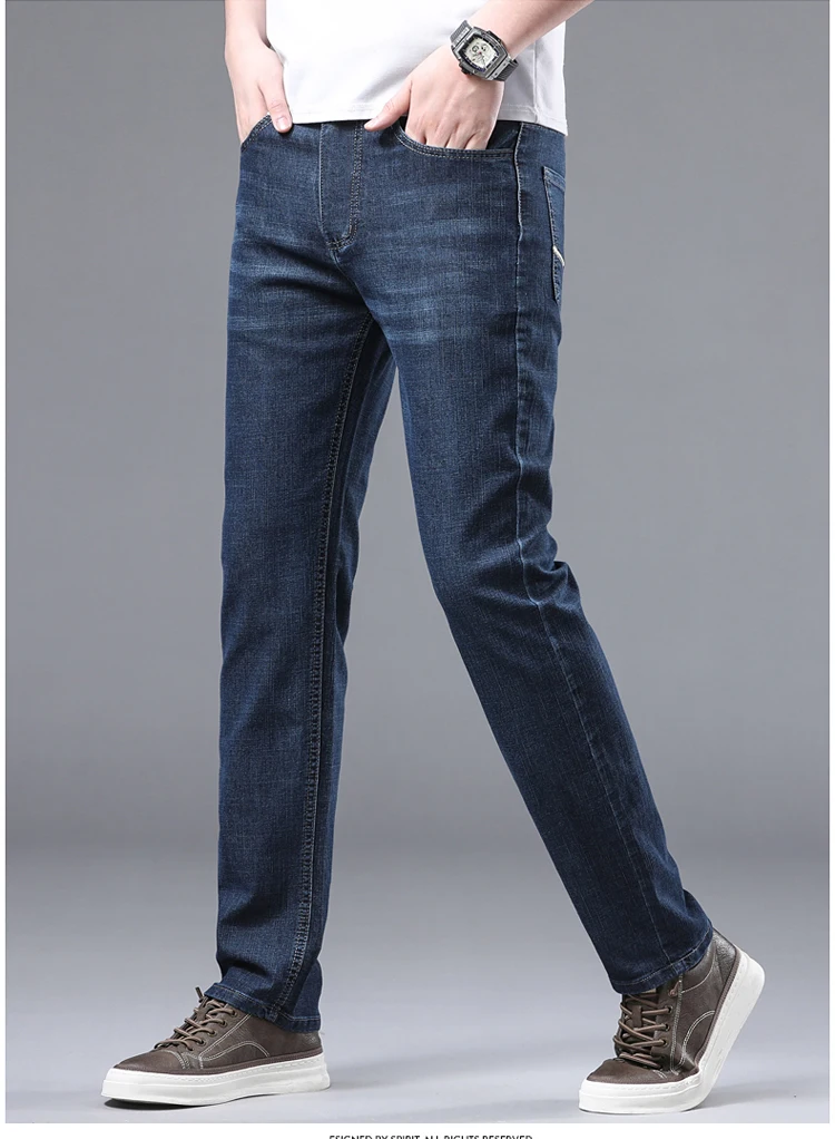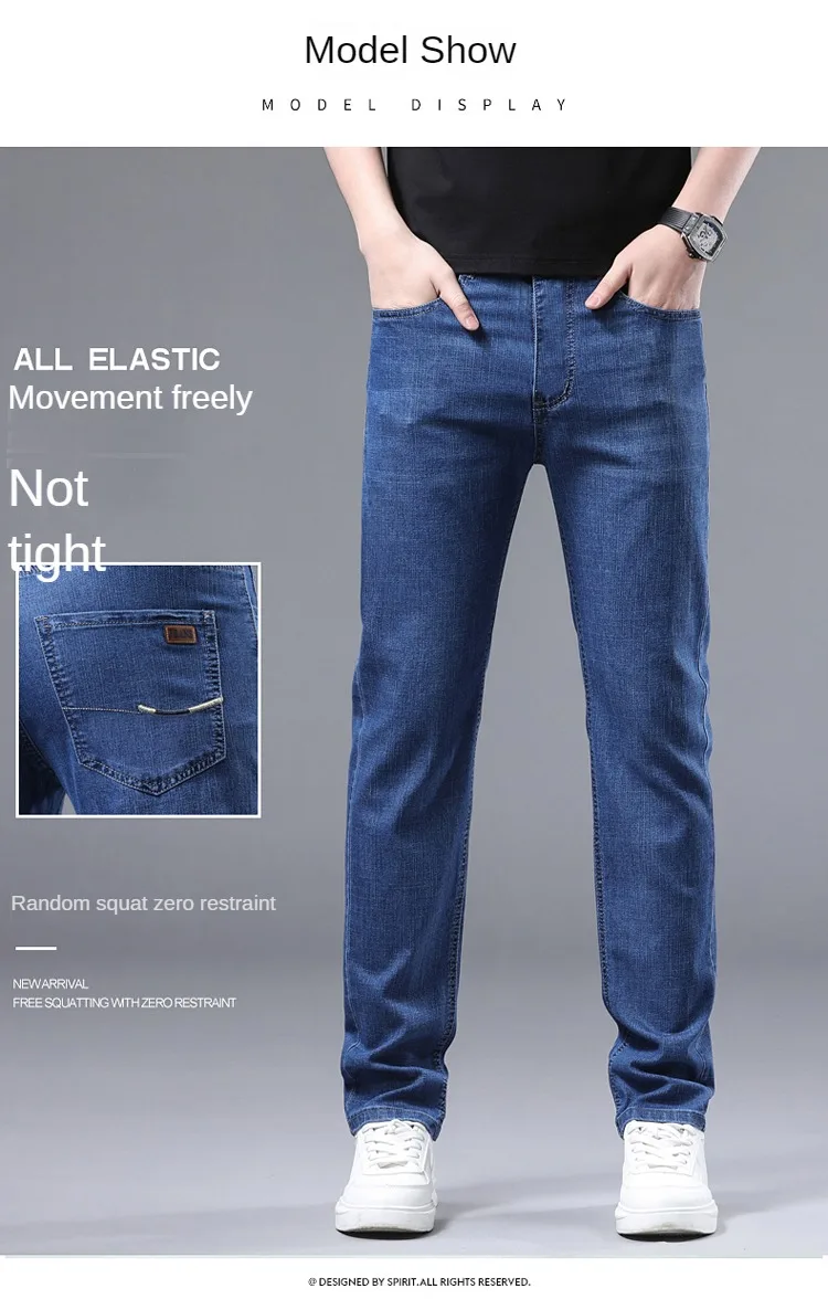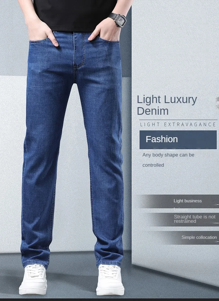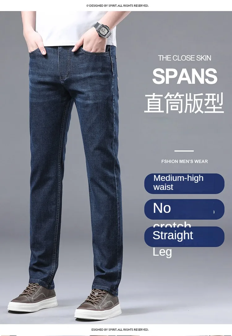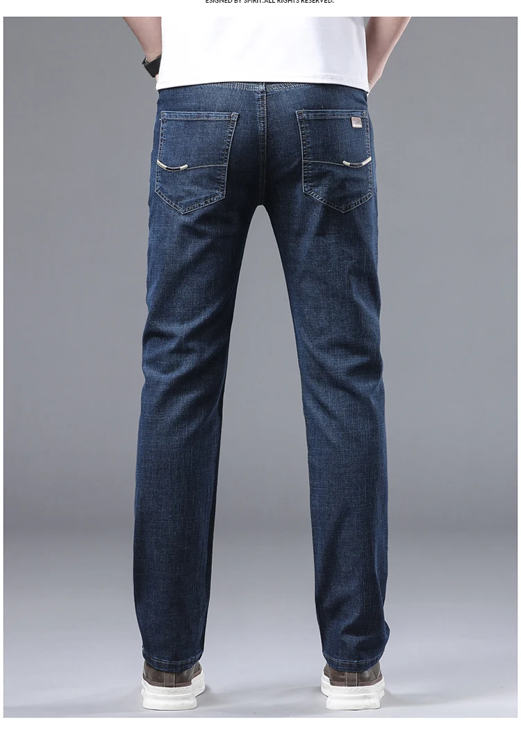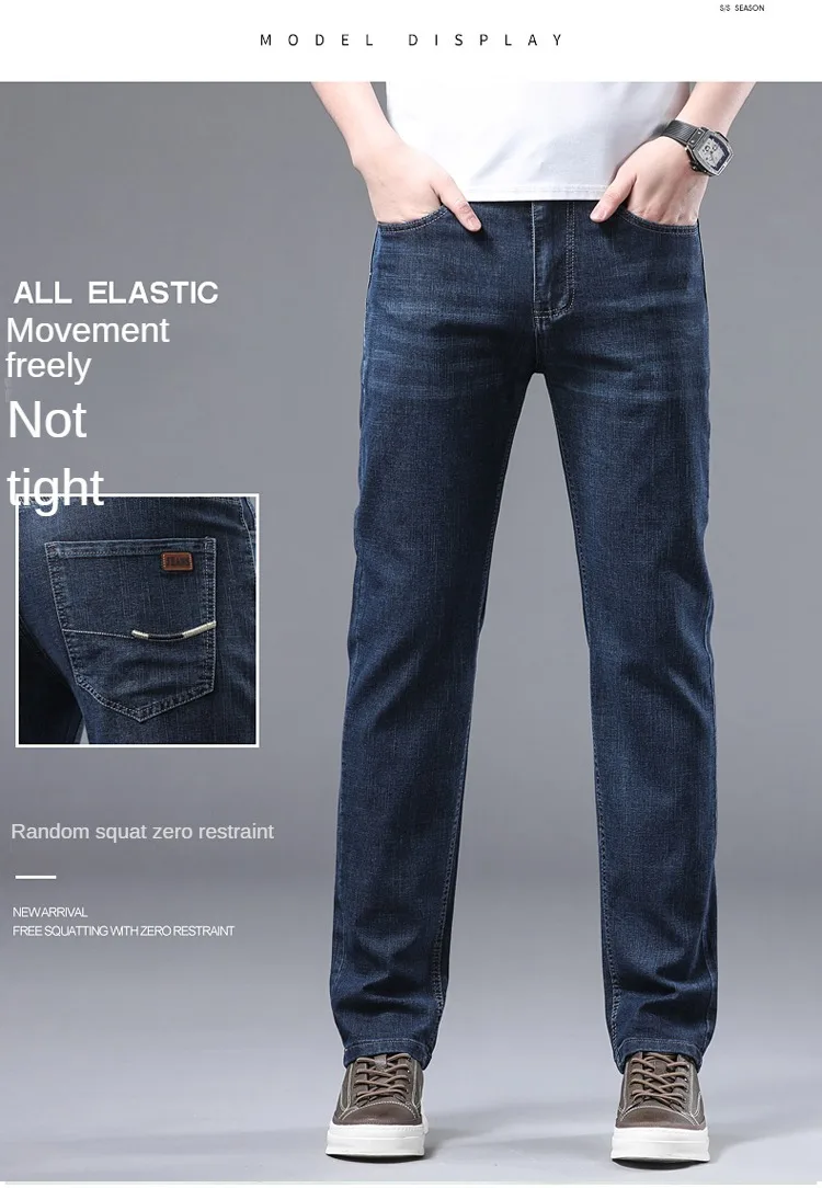 Popular 2024 New Stretch Jeans Business S Business Fashion Straight Regular Blue Stretch Denim Trousers Men's Smart Jeans