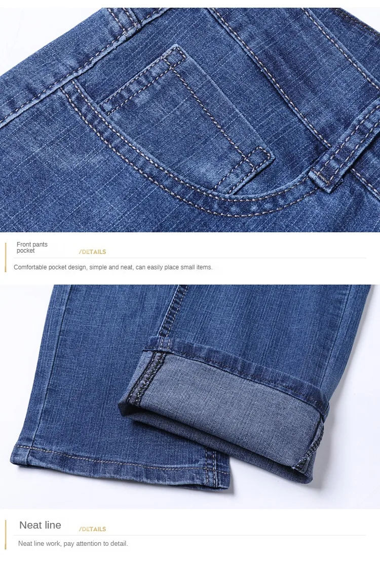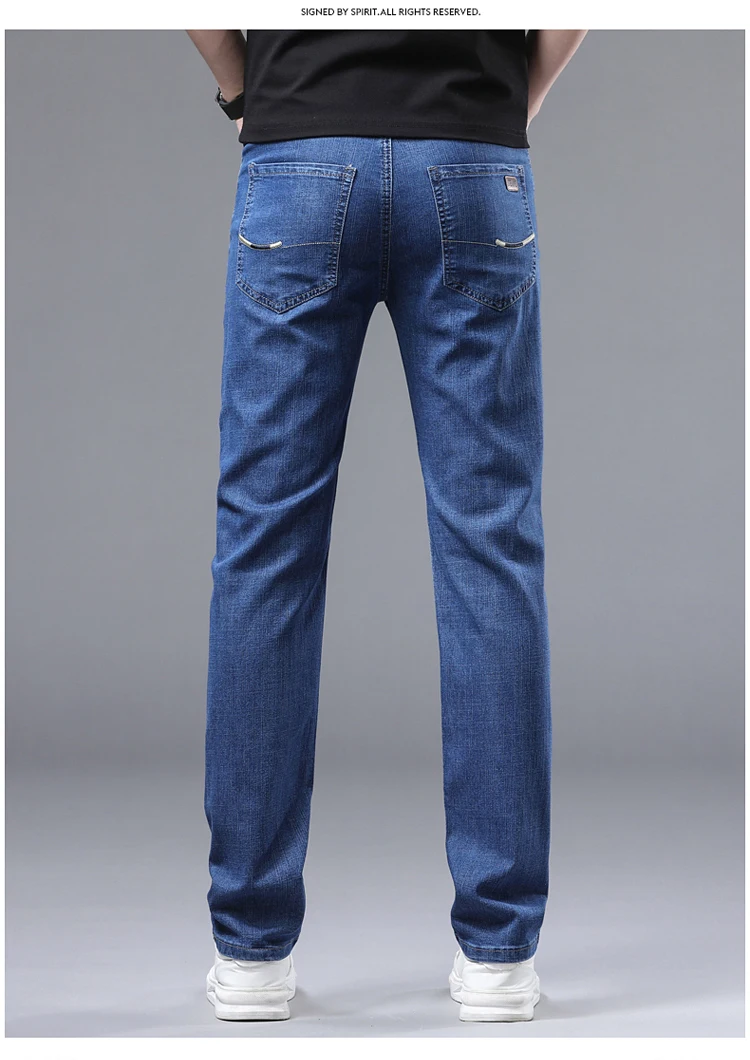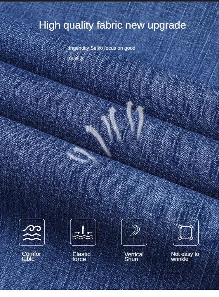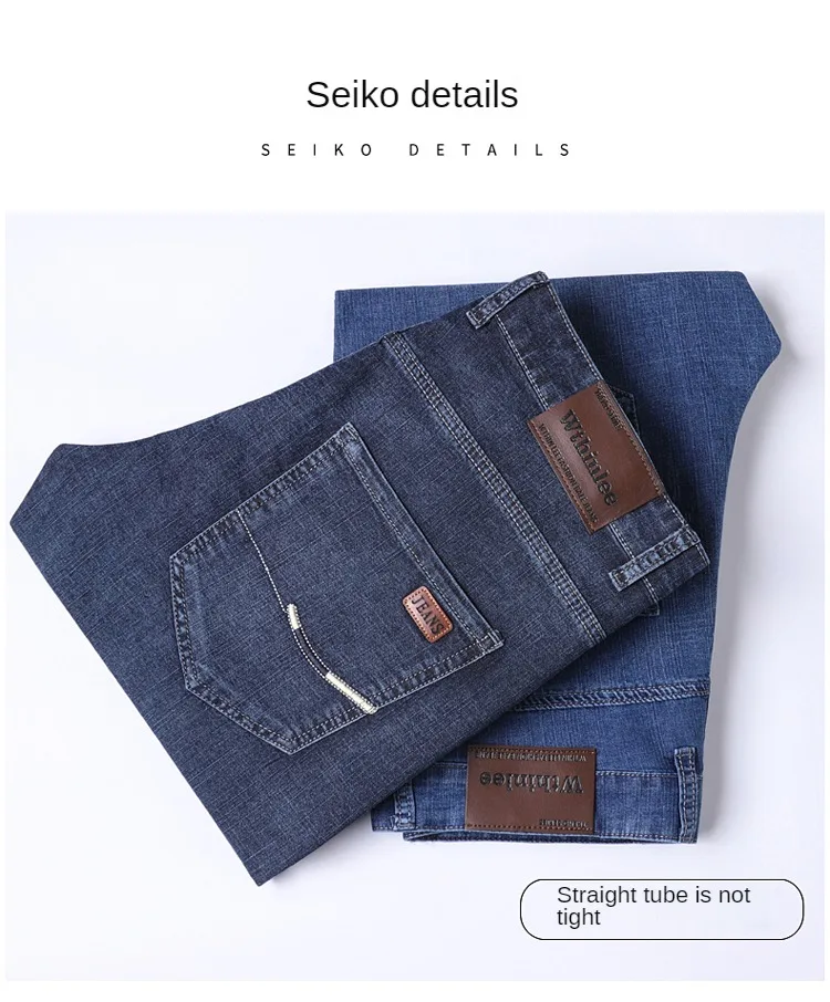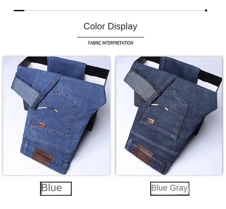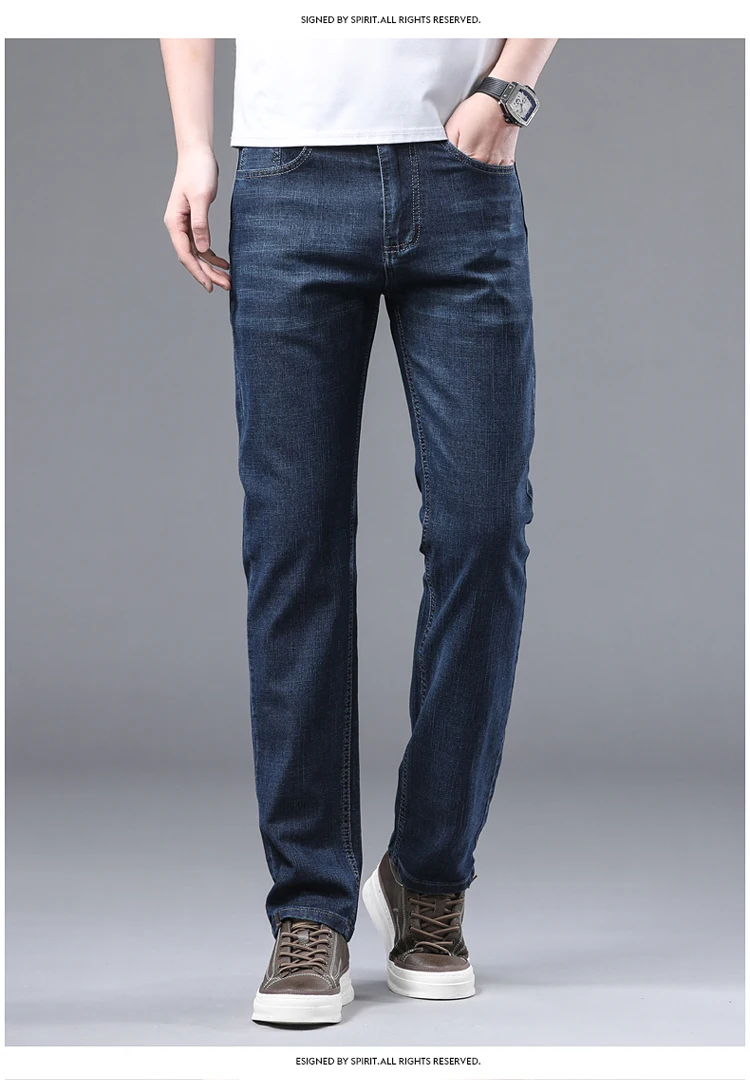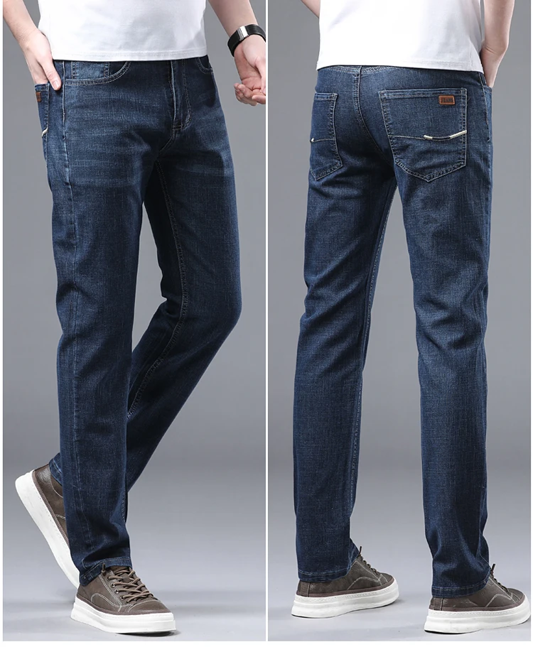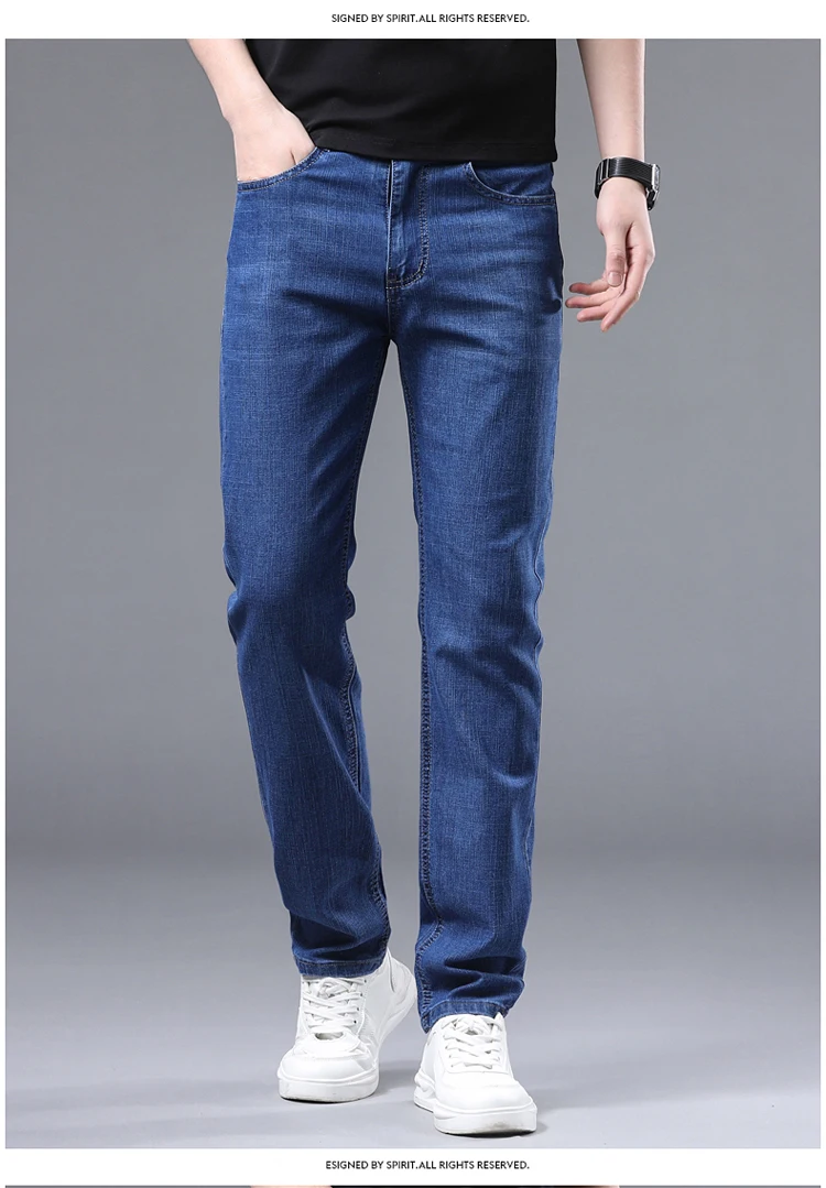 Popular 2024 New Stretch Jeans Business S Business Fashion Straight Regular Blue Stretch Denim Trousers Men's Smart Jeans