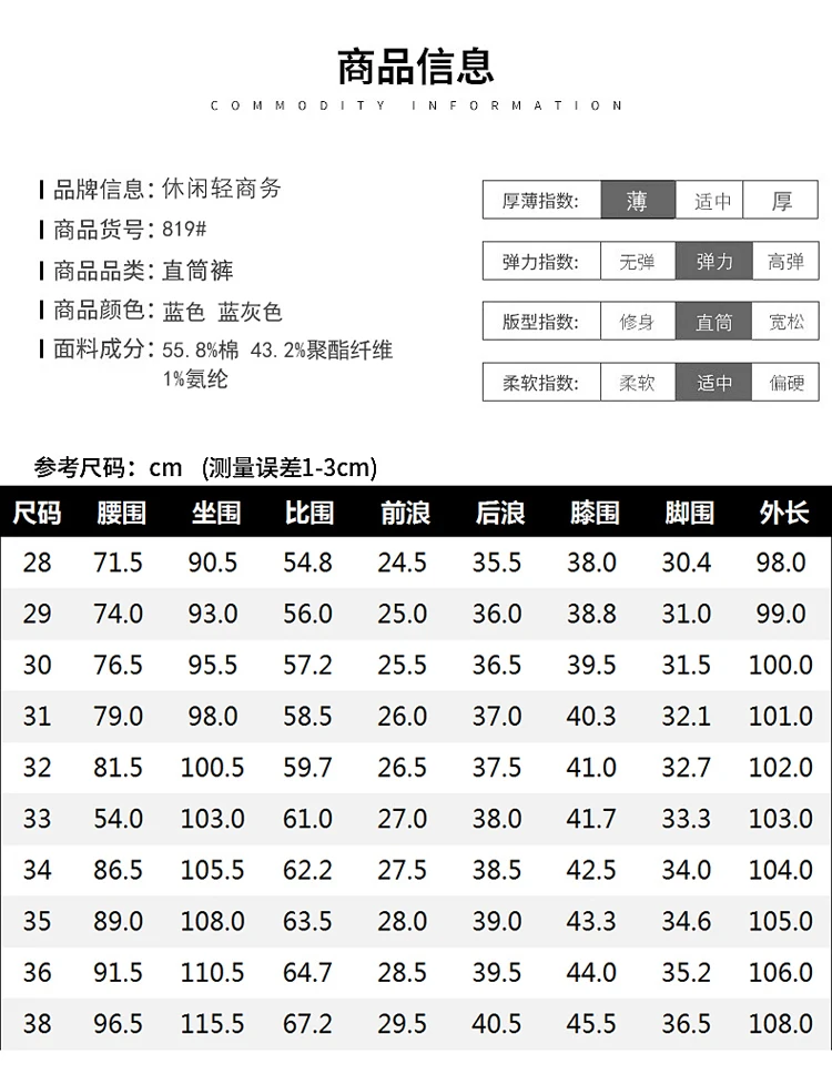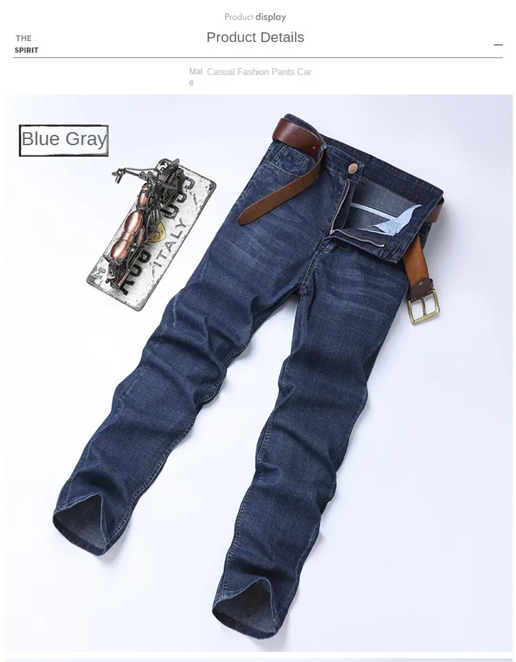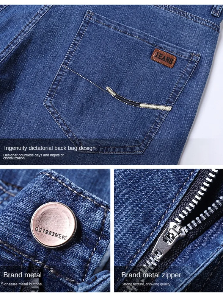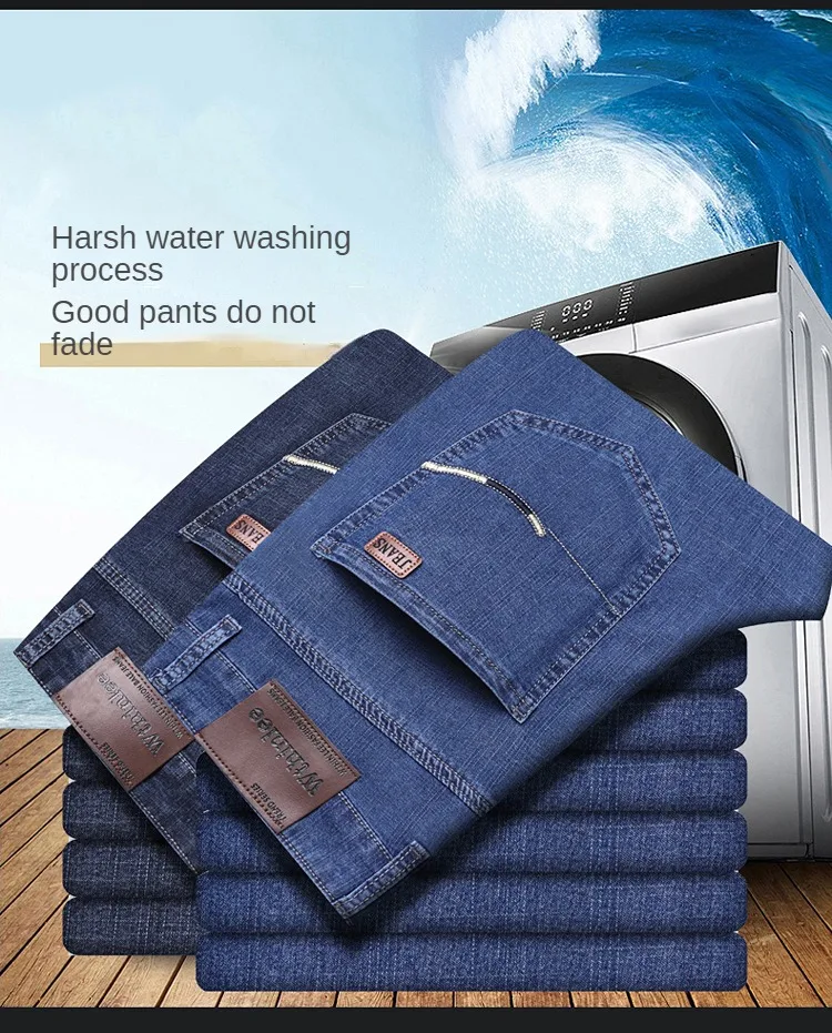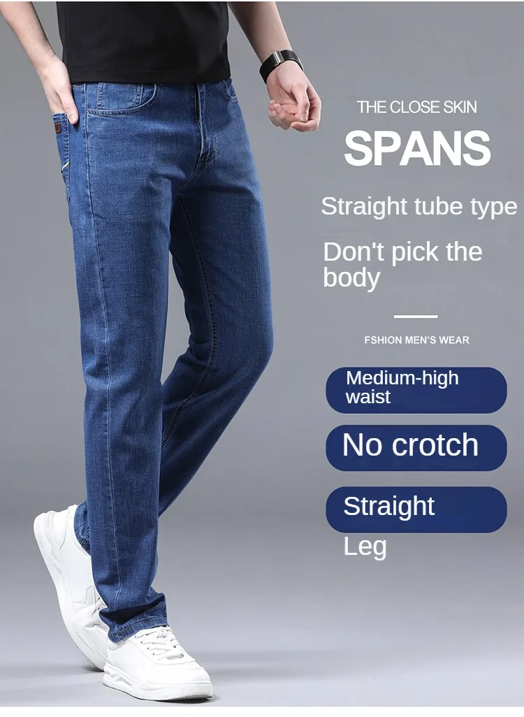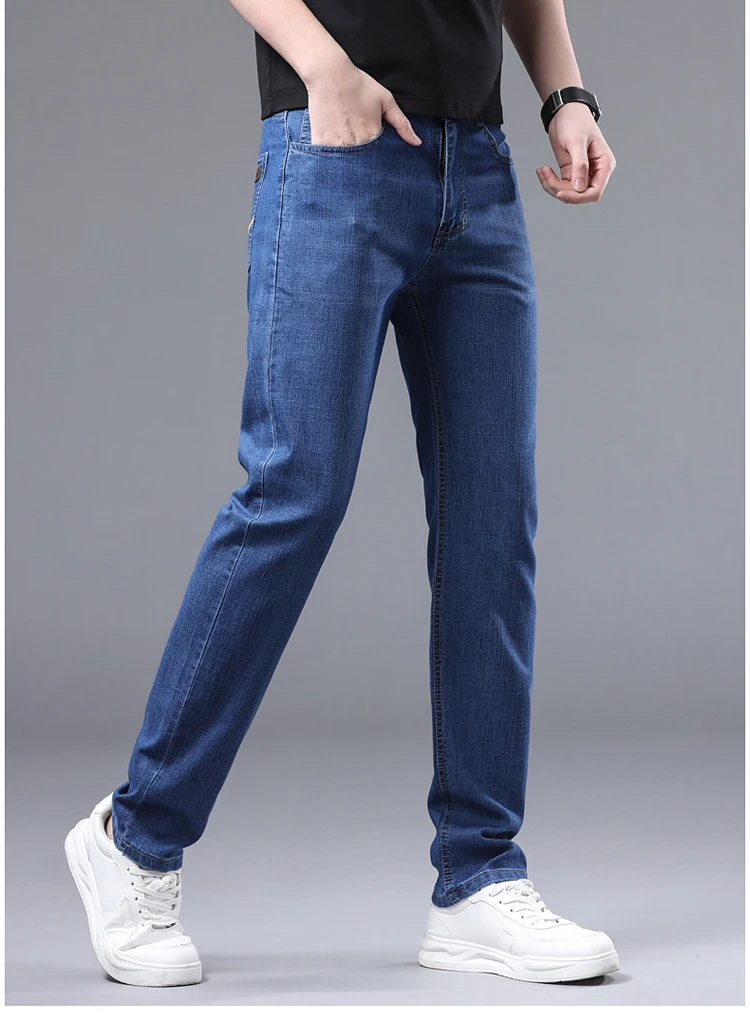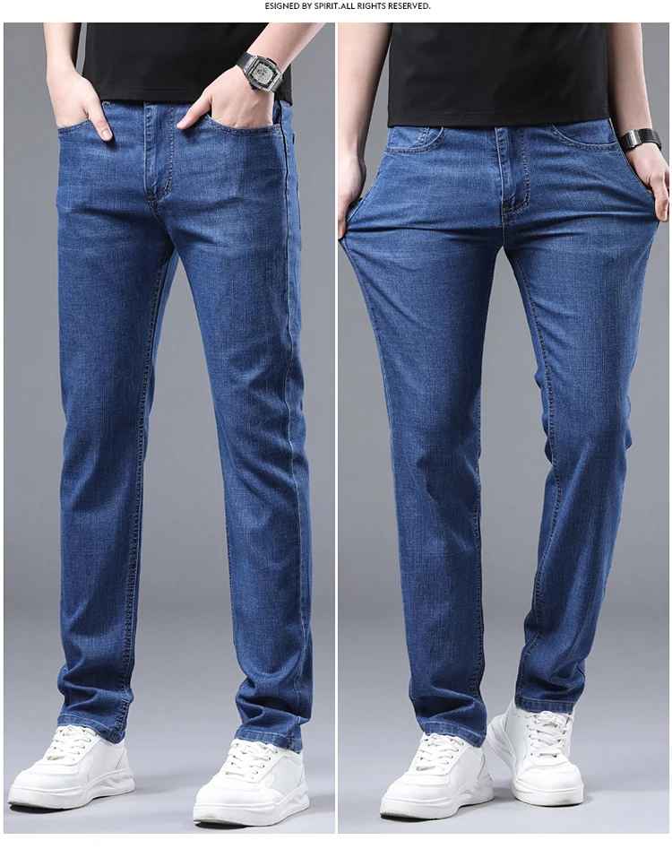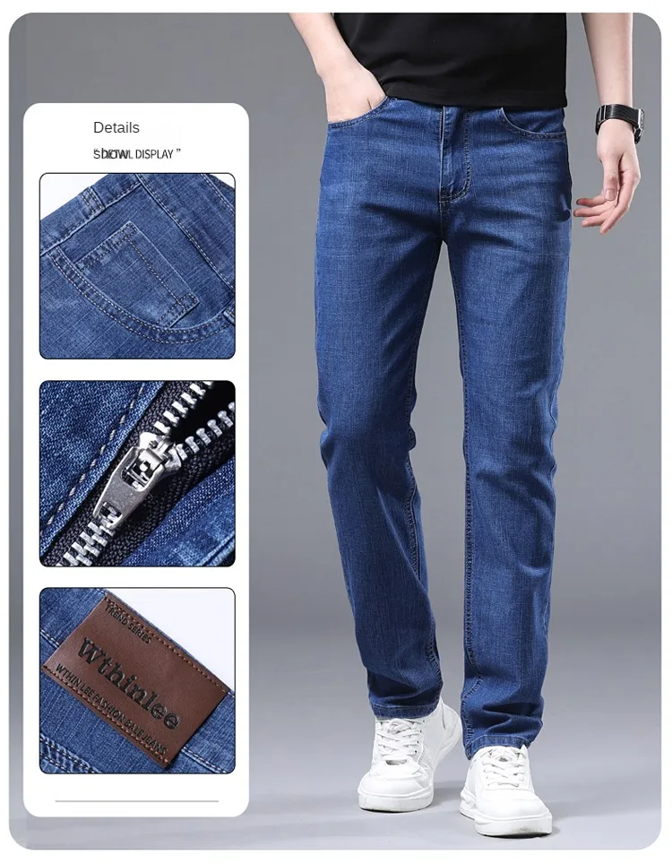 Popular 2024 New Stretch Jeans Business S Business Fashion Straight Regular Blue Stretch Denim Trousers Men's Smart Jeans