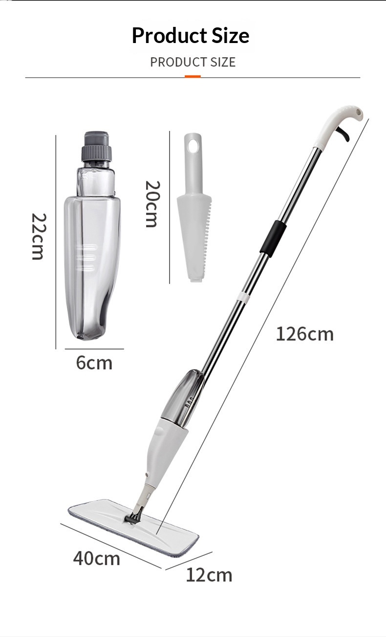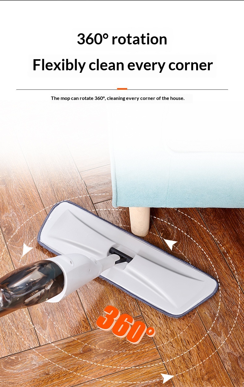 El trapeador en aerosol y el trapeador plano en aerosol limpian en una sola pasada. Adecuado tanto para limpieza en seco como en húmedo.