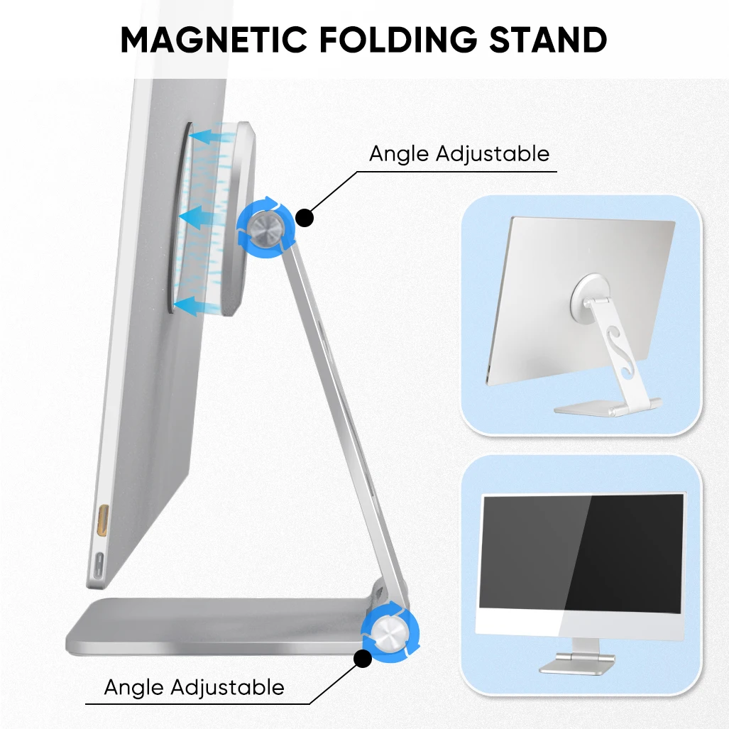 Slim thin narrow 1080P touchscreen monitor with foldable rotating bracket. Ergonomic design, 180° adjustable to meet viewing needs from different angles and reduce the burden on the neck. The anti-slip strip at the bottom is more stable when supporting the screen. Aircraft grade aluminium alloy makes the bracket protect the port from physical damage. Eco-friendly and easy to set up.