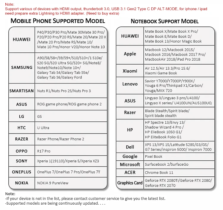(Note: While connect your device via Type-C port, Please check if the Type C of your laptop/phone is a full featured Type C port.Your device should support 1 3.0 or USB 3.1 Gen2 Type C DP ALT-MODE. If it is just a Type C for charging, it will not be available.)