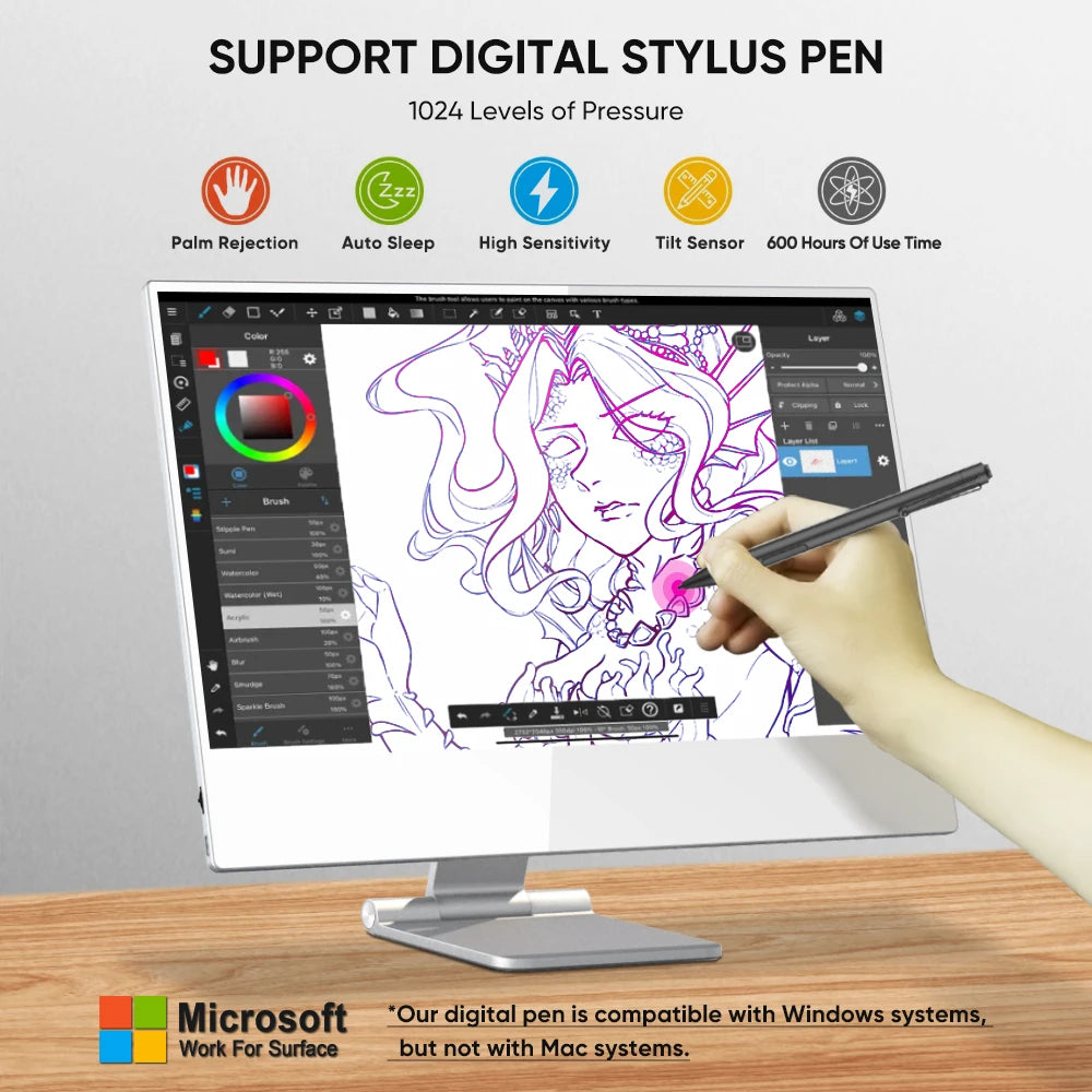 Monitor can recognize 1024 levels of pressure sensitivity, Mild support for Microsoft MPP1.51 Stylus Pen Touch Technology.