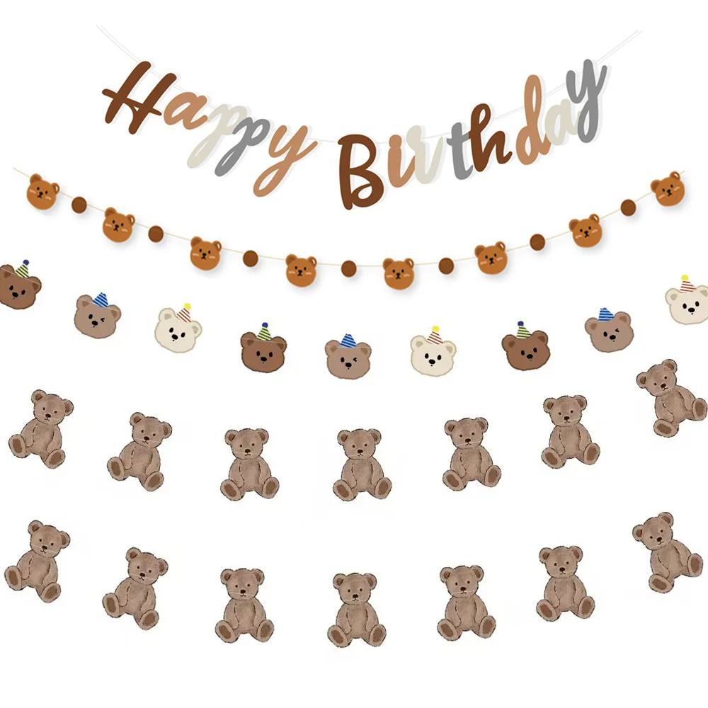 1Set 2.5M Cute Bear Garland Carton Happy Birthday Banners for Kids Bear Themed Birthday Party Decoration Supplies Room Decor