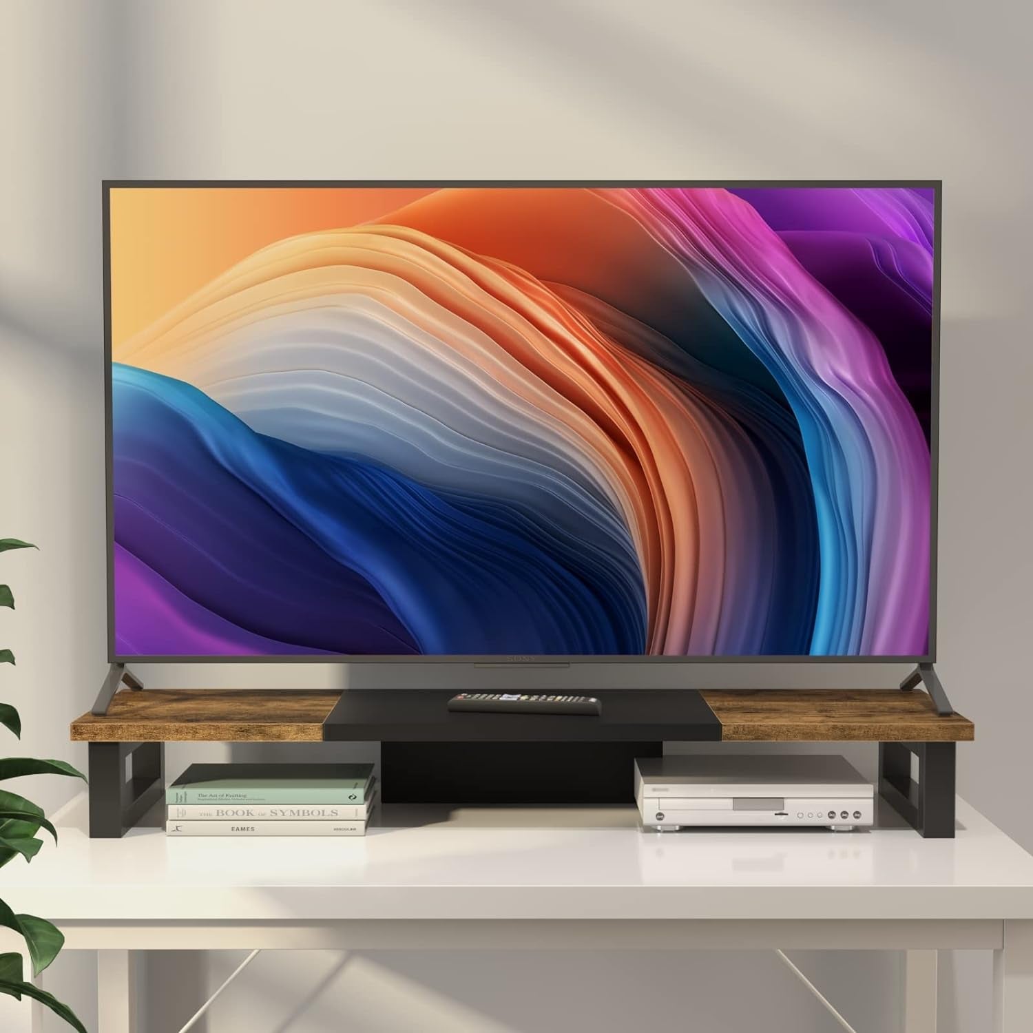 The wood and steel monitor stand delivers a sturdy, wobble-free foundation for your setup. Thick steel legs provide maximum strength, while the warm wood accents add a touch of rustic charm to any desk or entertainment area.