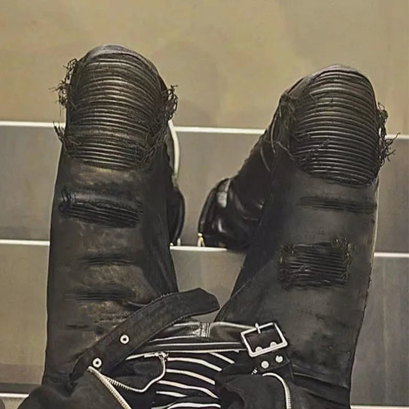 Owen Seak Men‘s Oil wax Jeans Cotton Denim Slim Autumn Hole Pencil Trousers Designer luxury Pants