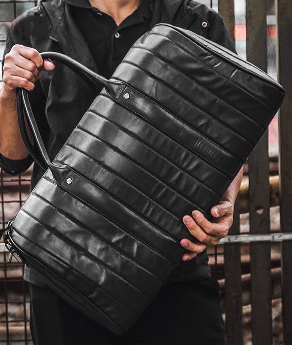 Rossie Viren Vintage Leather Pleated Duffel Travel Weekend Holdall Bags
