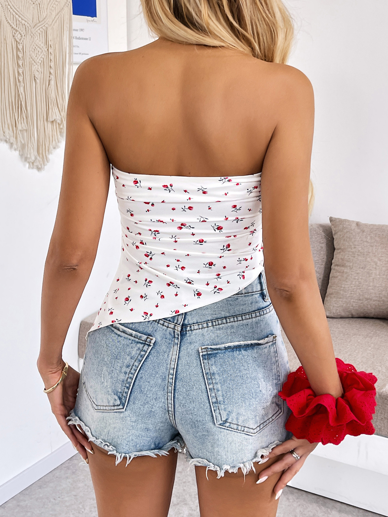 Women's Sexy Tube Top Irregular Hem Floral Blouse